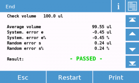 | Customized control methods can also be defined: the volumes to be checked and the number of samples can be entirely defined by the user. | It is possible to identify whether a pipette needs maintenance or (re)calibration by assessing its performance according to the specifications given by the ISO8665 directive |