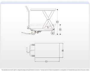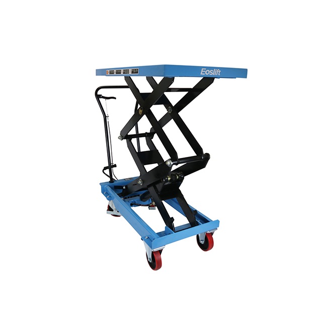 • Eoslift USA Industrial Grade Heavy Duty TAD35 Manual Double Scissor Life Table Cart. The load maximum is 770 lbs., and it has a 62.4 in. raise height. The table measures 20.5 x 39.7 in. and is made of reinforced robotic welding to lift the heaviest items. It also features polyurethane wheels to complete any loading project.