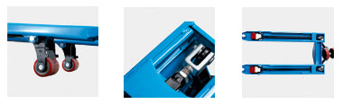Industrial Grade reinforced steel Reinforced robotic welding Galvanized fully enclosed industrial grade hydraulic pump 3 position control handles Powder coated paint Ergonomic A-handle Easy 55° turning radius Emergency replacement hydraulic check valve